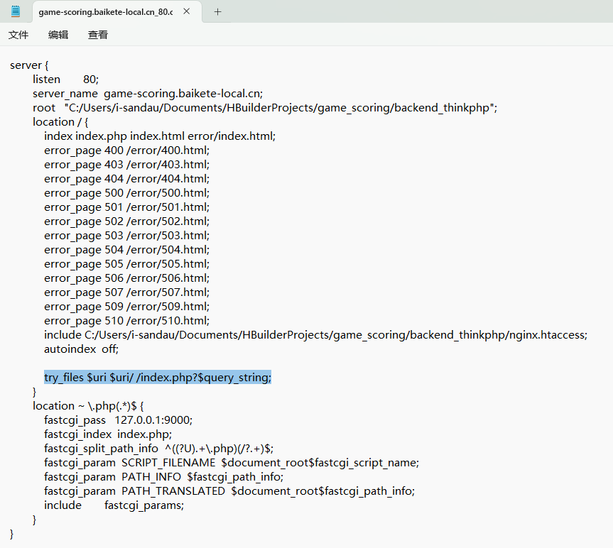 nignx/conf下有vhosts.conf这个文件的话,在这个文件里配置,当有这个文件的时候,在nginx.conf里配置是不起作用的。没有的话就在nginx.conf文件配置.